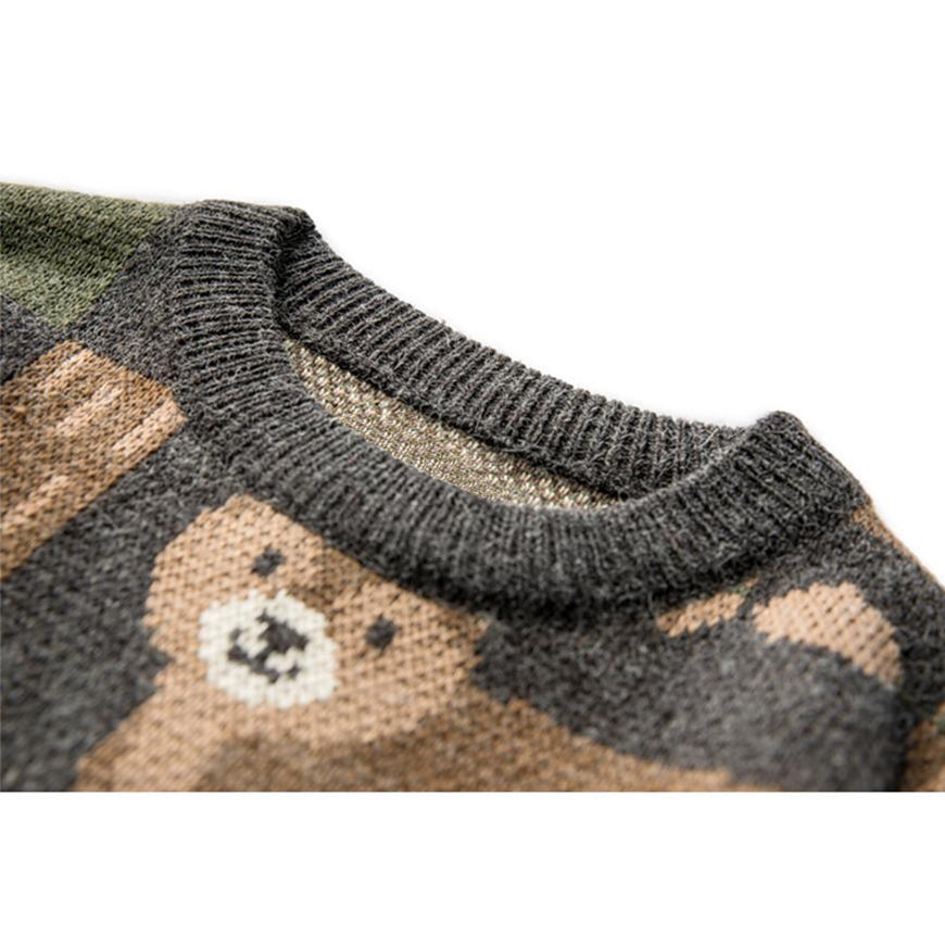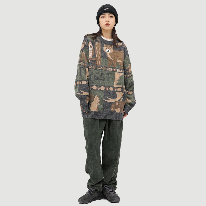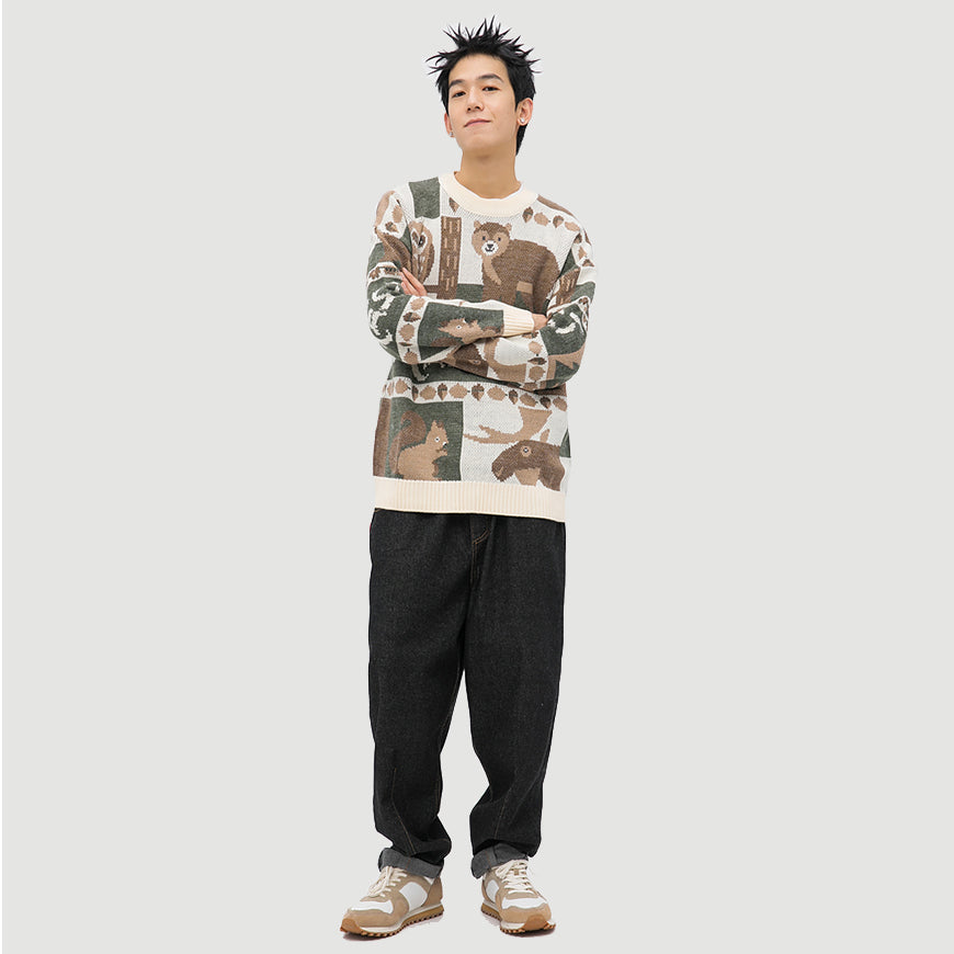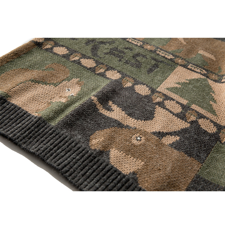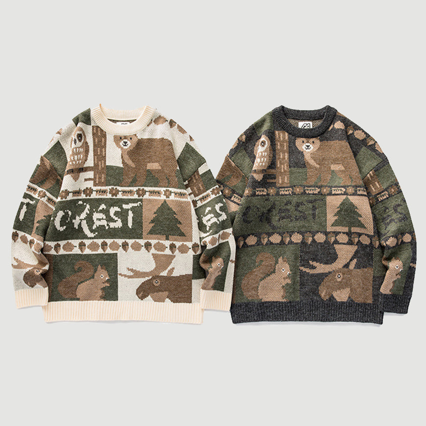 The collection of various forest elements enriches the design sense of this sweater. The color scheme is mainly brown, highlighting the retro style of the sweater.