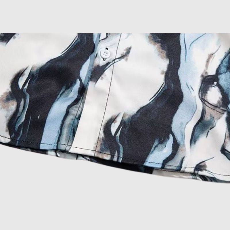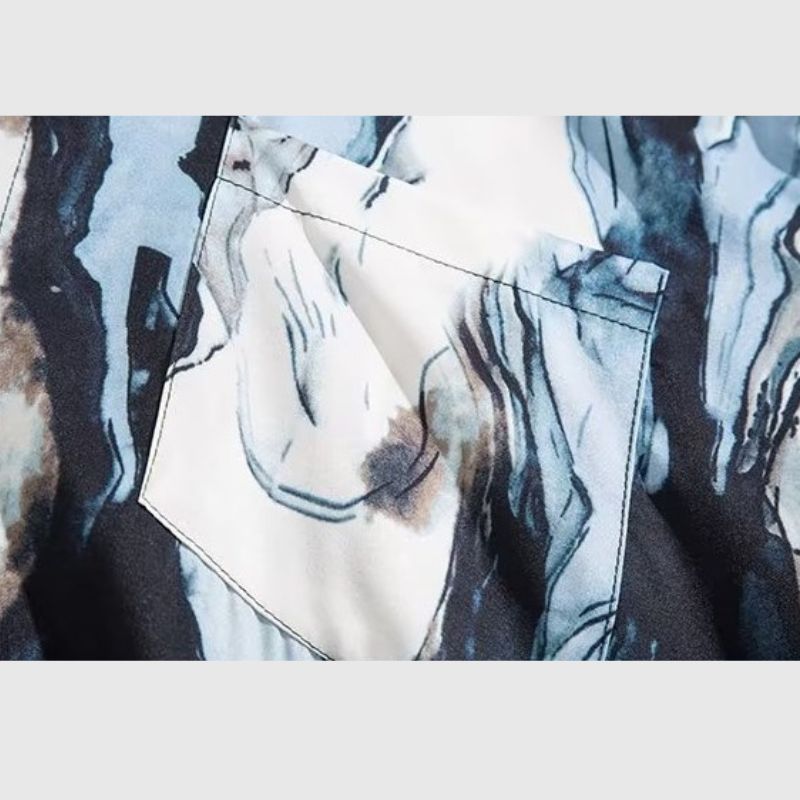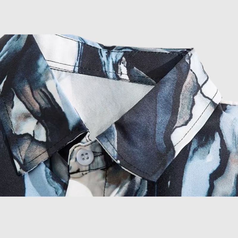 Features: Shirts, lapel, short sleeve, ink, tie-dye printed design, soft and breathable, unisex, couple outfits.