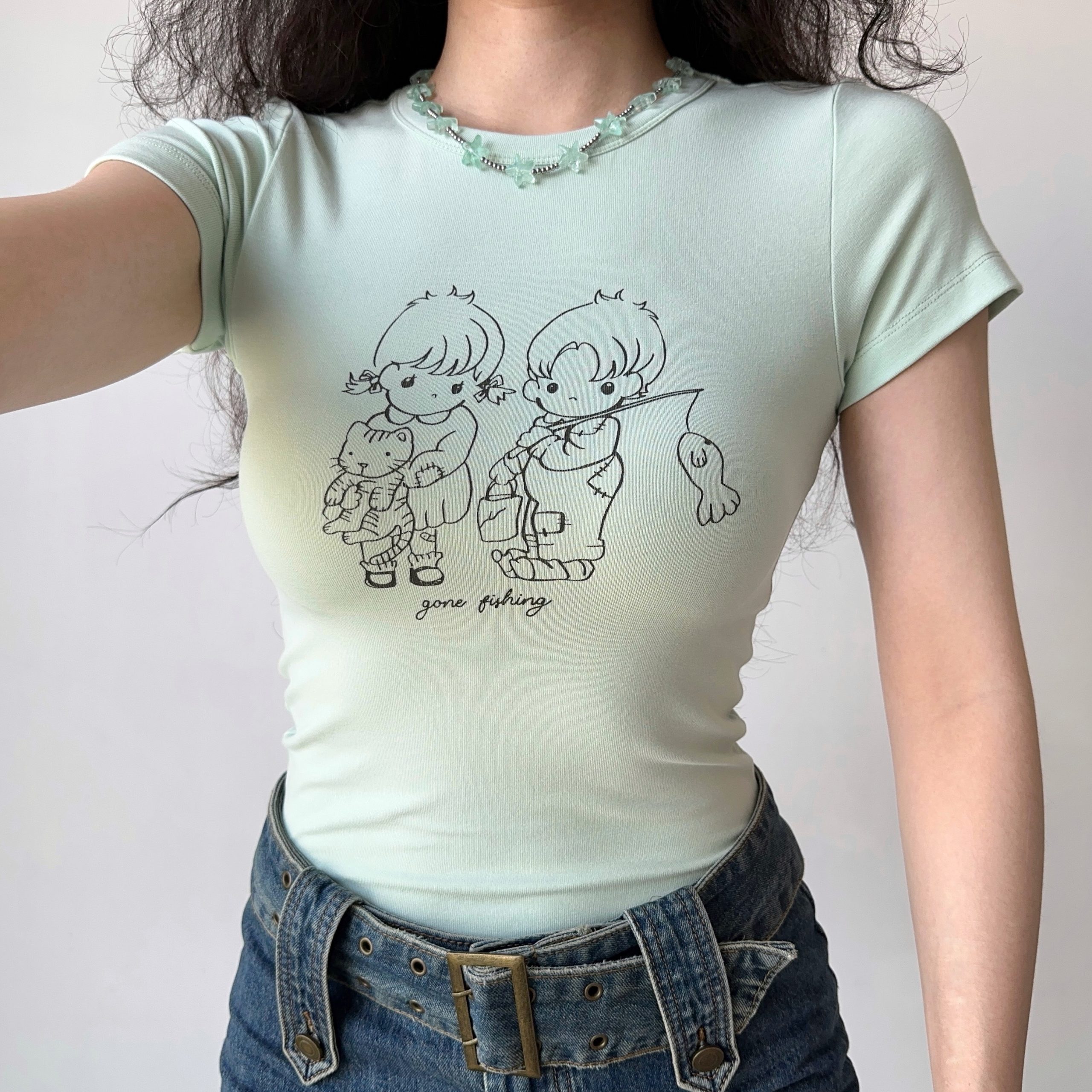 Summer Slim Fit Shoulder Women Simple Line Drawing Print, Neck Short Sleeve Top High-quality product featuring prom dresses, spring outfits, business casual outfits and more. Modern design that fits the latest trends. Premium materials ensure durability and comfort. Order now for special offers! Product designed with attention to every detail. Suitable for all occasions and personal styles.