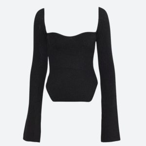 Upgrade your style with this knitted top, boasting a flattering sweetheart neckline. The form-fitting design and long sleeves create a sleek silhouette, perfect for jeans or skirts on any occasion.