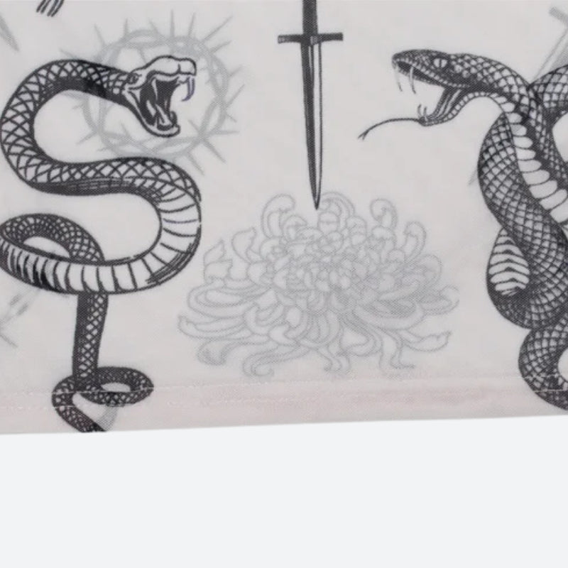 This sheer tattoo-print top is perfect for making a bold statement. With its edgy designs and lightweight fabric, it’s ideal for layering or pairing with high-waisted denim for a sleek, modern look.