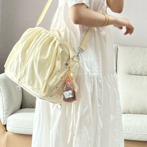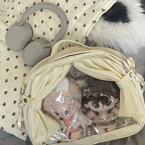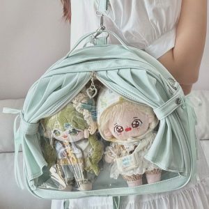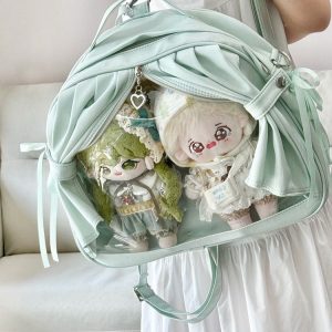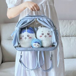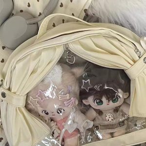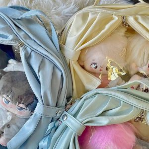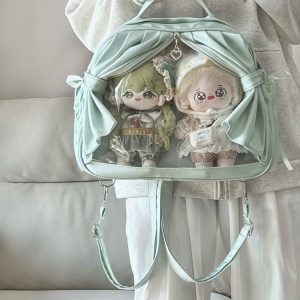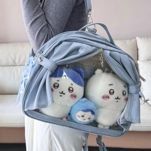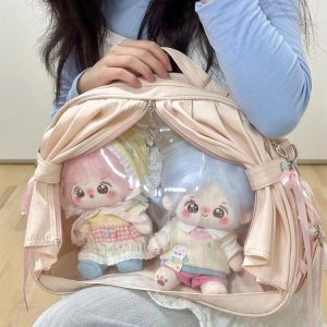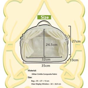 Give your plush doll a cozy home with this ita bag featuring a unique theater curtain design. The front curtain can be opened or closed to showcase your display just the way you like. It can be worn as either a shoulder bag or a backpack and comes with two matching adjustable straps, each extendable up to 120 cm. Made from glitter crinkle composite fabric, the bag has a natural shimmer under light. Spacious enough to fit A4 folders, notebooks, a 12.9-inch tablet, or an 11-inch tablet.
