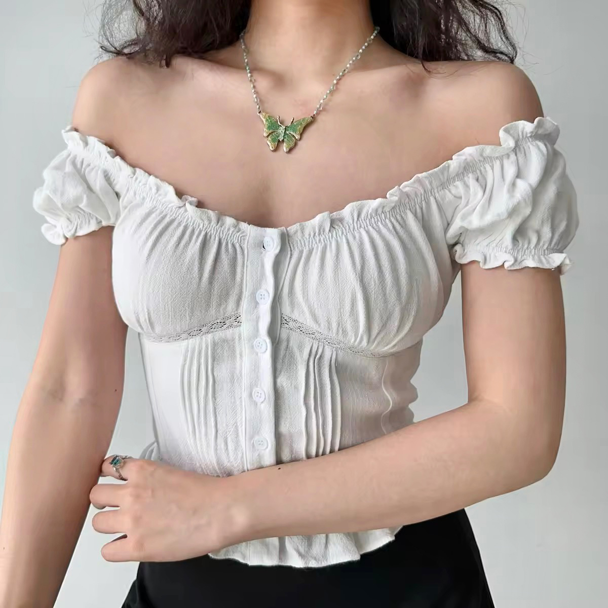Elevate your wardrobe with our Three-Dimensional Cut Lace Short Sleeve T-shirt, designed for a flattering slim fit that hugs your curves perfectly. This trendy high-waist top features exquisite lace detailing, embodying the chic essence of European and American style, perfect for achieving that iconic 90s look. Whether paired with high-waisted jeans or a skirt, it’s a versatile piece that effortlessly transitions from day to night. Don’t miss out on this fashion-forward essential—add it to your cart today!