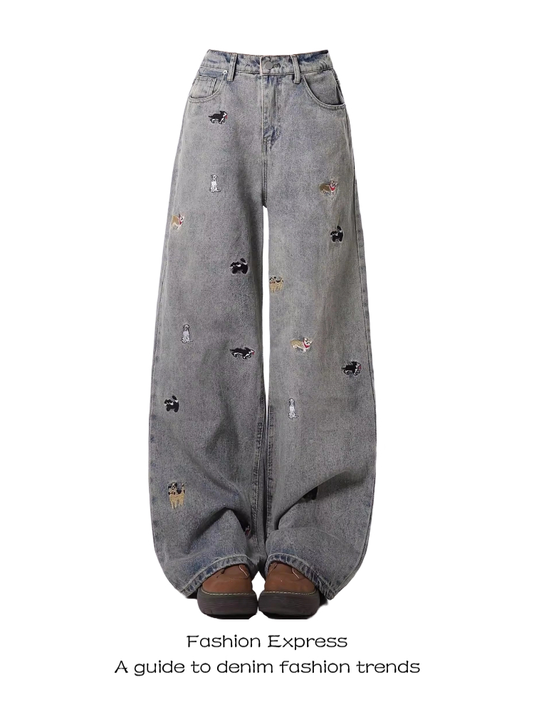 Retro High Waisted Denim Pants Women Fun Dog Embroidery, Straight Leg High-quality product featuring prom dresses, spring outfits, business casual outfits and more. Modern design that fits the latest trends. Premium materials ensure durability and comfort. Order now for special offers! Product designed with attention to every detail. Suitable for all occasions and personal styles.