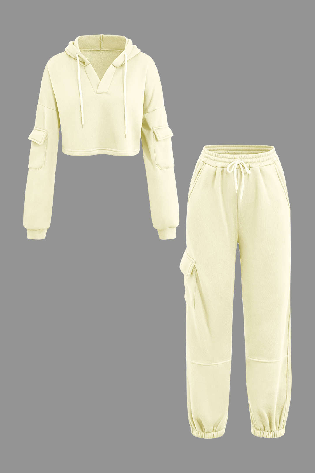 Ready to redefine your fashion game? Shop now and step into the spotlight with our V-Neck Long Sleeve Pocket Hoodie and Comfy Sweatpants Set!