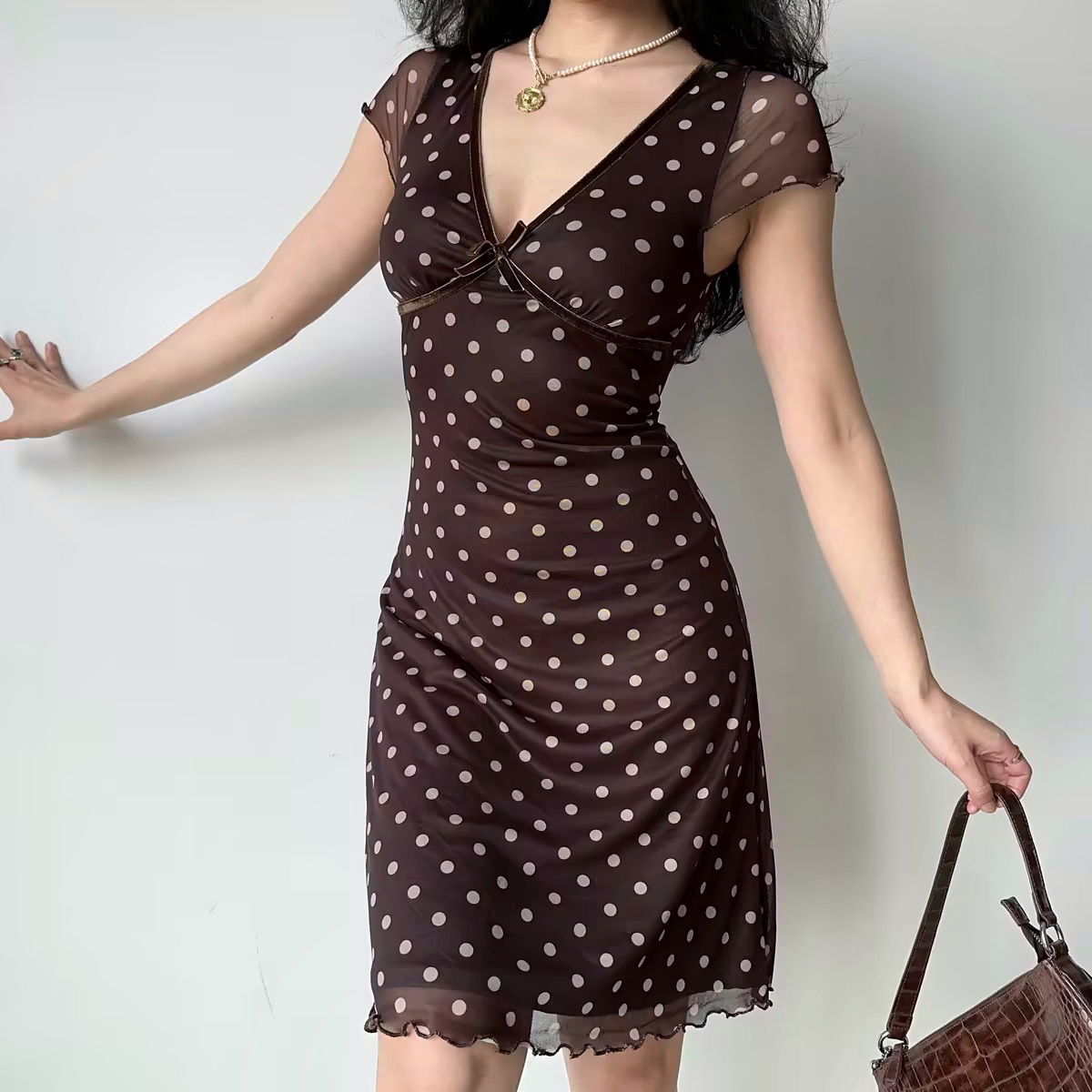V- Neck Polka Dot Short Sleeve Dress Women Slim A Line Skirt, Y2K High-quality product featuring prom dresses, spring outfits, business casual outfits and more. Modern design that fits the latest trends. Premium materials ensure durability and comfort. Order now for special offers! Product designed with attention to every detail. Suitable for all occasions and personal styles.