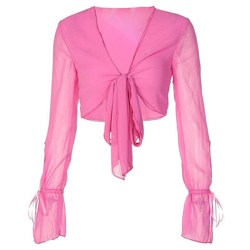 V- Neck Self Tie Front Chiffon Long Sleeve Crop Top Y2K Cute Top Outfits High-quality product featuring prom dresses, spring outfits, business casual outfits and more. Modern design that fits the latest trends. Premium materials ensure durability and comfort. Order now for special offers! Product designed with attention to every detail. Suitable for all occasions and personal styles.