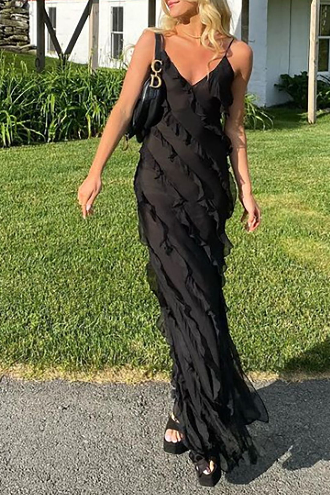 Step into the spotlight with our V-neck Tiered Ruffle Maxi Dress, the ultimate Y2K summer outfit that perfectly captures the essence of retro style. This stunning dress is designed for those who love to embrace the vibrant and eclectic vibes of 90s fashion while staying effortlessly chic. With its flowing tiers and playful ruffles, this maxi dress is ideal for Y2K beach</strong outings, summer parties, or casual brunches with friends.