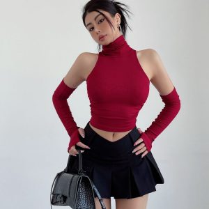 Immerse yourself in aesthetic allure with this college-inspired V-shaped front mini skirt. The pleats add a flirty twist to its classic polyester construction. Donned in black, it amplifies the slim-fit silhouette, ensuring a flattering match with anything from tucked-in blouses to cropped tops.