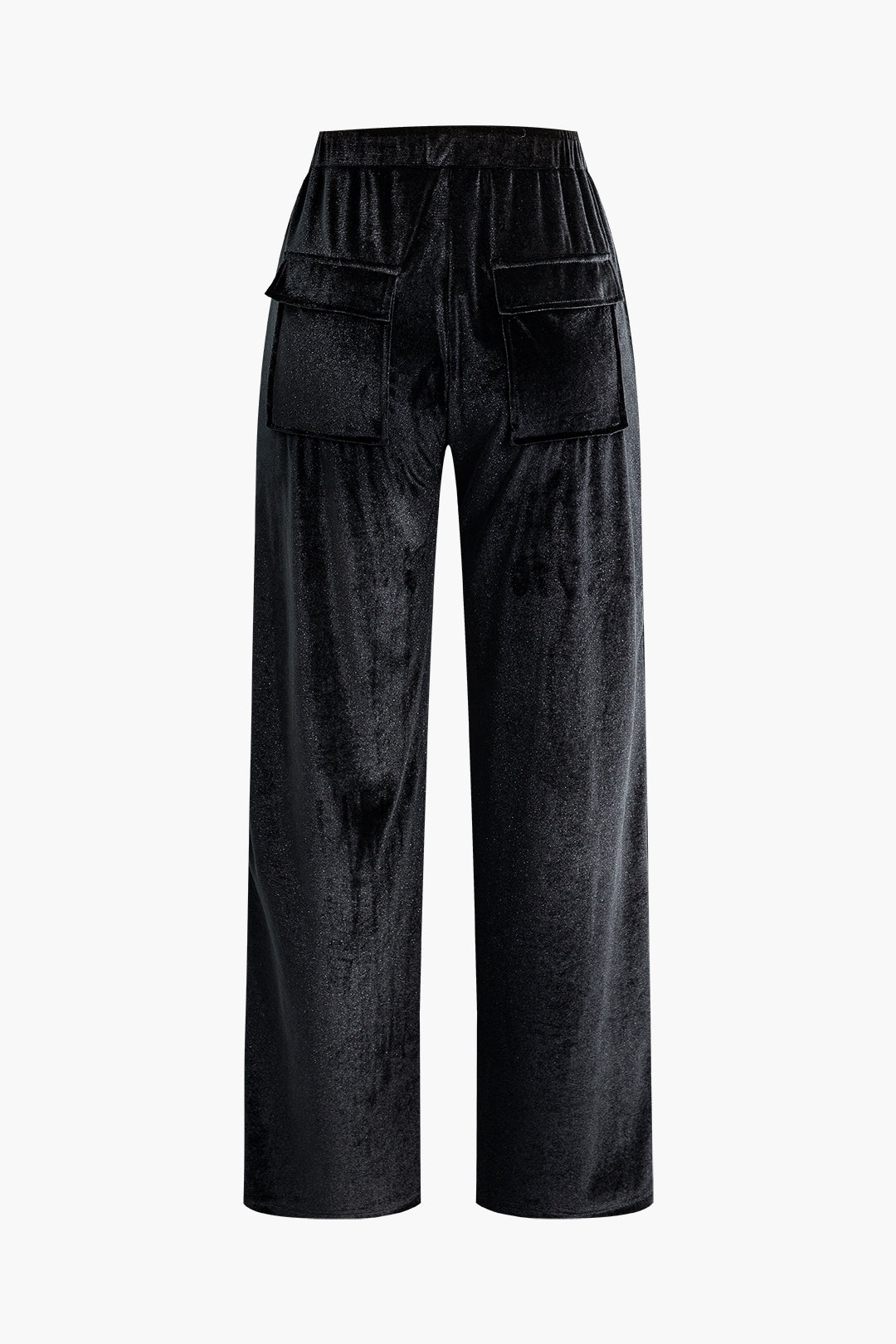 Velvet Drawstring Hooded Crop Top Zipper, Flap Pocket Straight Leg Pants Set High-quality product featuring prom dresses, spring outfits, business casual outfits and more. Modern design that fits the latest trends. Premium materials ensure durability and comfort. Order now for special offers! Product designed with attention to every detail. Suitable for all occasions and personal styles.