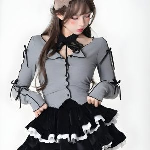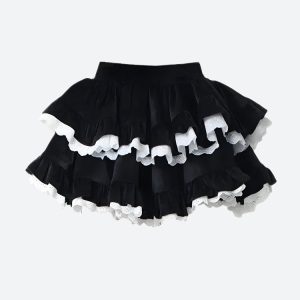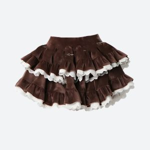 Adorn yourself in enchantment with this fairy grunge, kawaii-inspired mini skirt, perfect for adding a touch of cute whimsy to your wardrobe. The luxurious velvet material is complemented by delicate lace trimming and a layered ruffle design, featuring contrast color details. An elasticated waistband ensures a comfortable fit, making it perfect for cosplay, fall and winter parties, or festival outings.