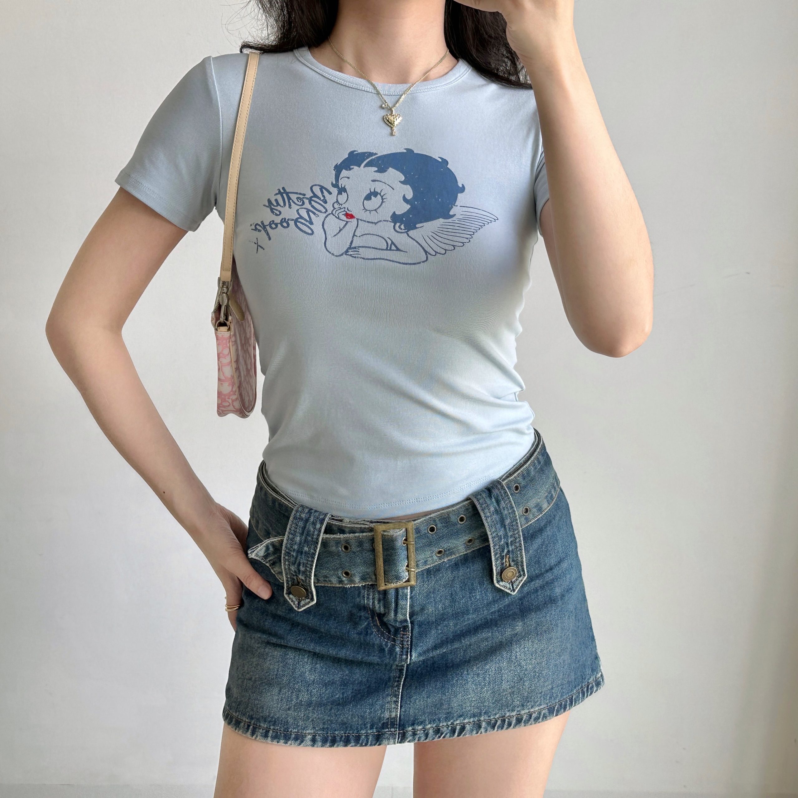 Vintage Cartoon Print Neck Short Sleeve Women Slim Fit Top High-quality product featuring prom dresses, spring outfits, business casual outfits and more. Modern design that fits the latest trends. Premium materials ensure durability and comfort. Order now for special offers! Product designed with attention to every detail. Suitable for all occasions and personal styles.
