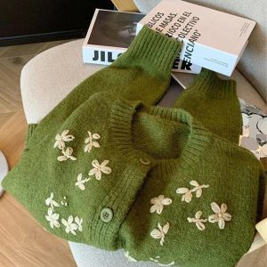 This vintage-style cardigan features beautiful daisy embroidery, adding a touch of retro charm. The soft material ensures comfort, making it suitable for winter or fall. Ideal for grandmacore enthusiasts or anyone who loves a comfy, nostalgic look.