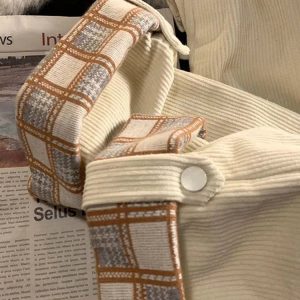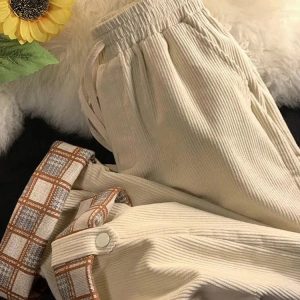 These Vintage Drawstring Corduroy Pants offer a perfect blend of comfort and retro style. Crafted from soft, textured corduroy fabric, these pants are designed to keep you cozy while adding a vintage flair to your wardrobe. The plaid lining detail inside the cuffs adds a subtle touch of character when rolled up, giving your outfit an extra bit of charm.