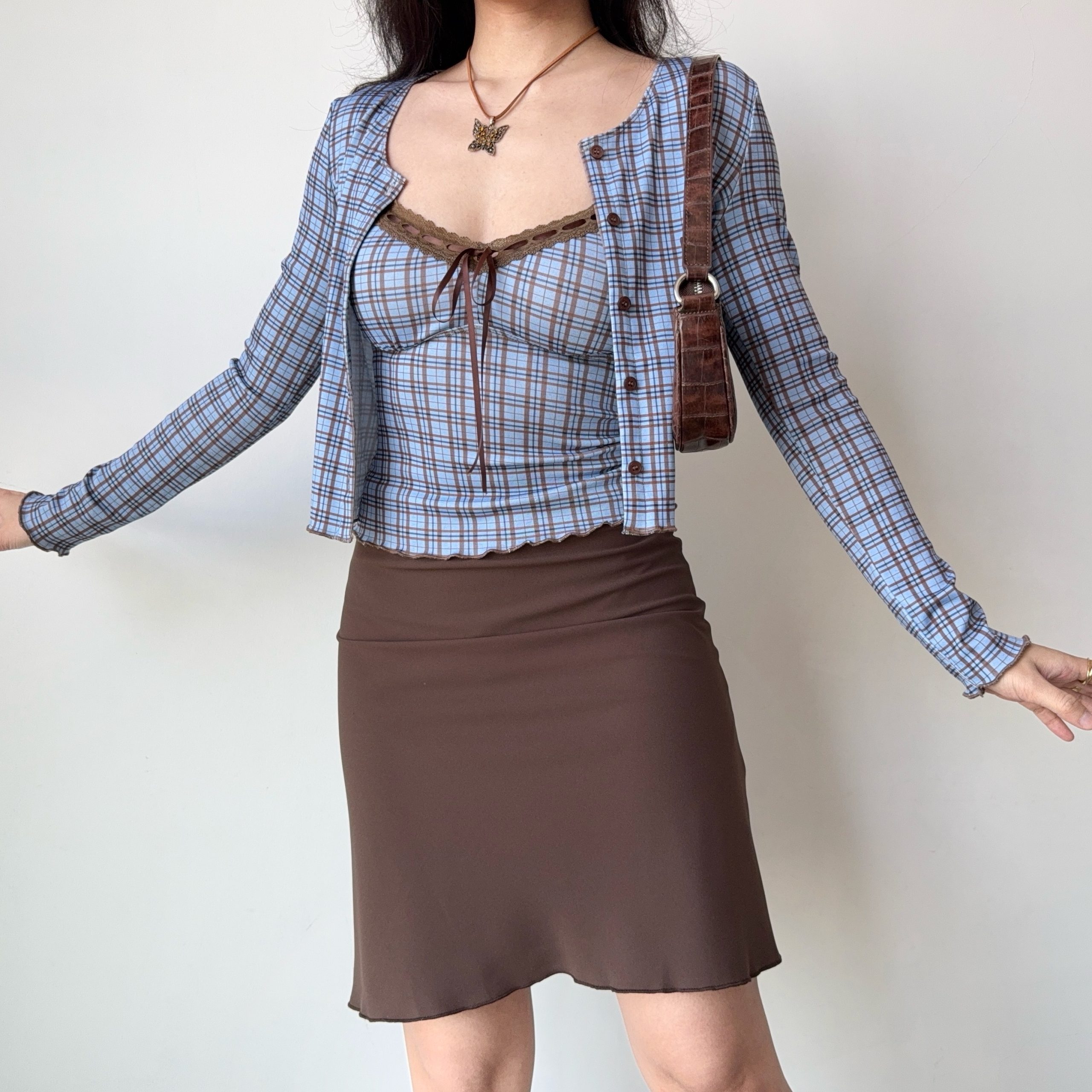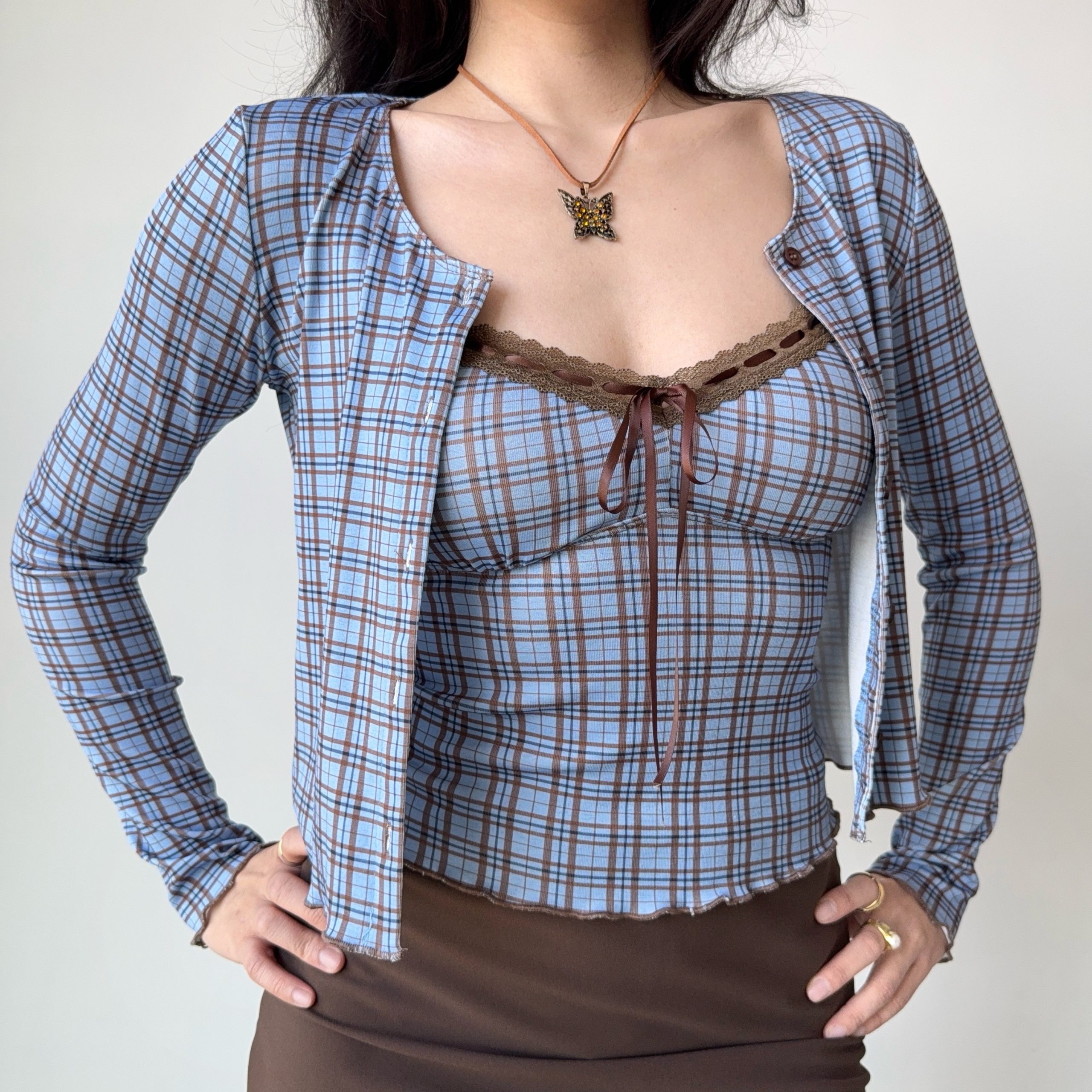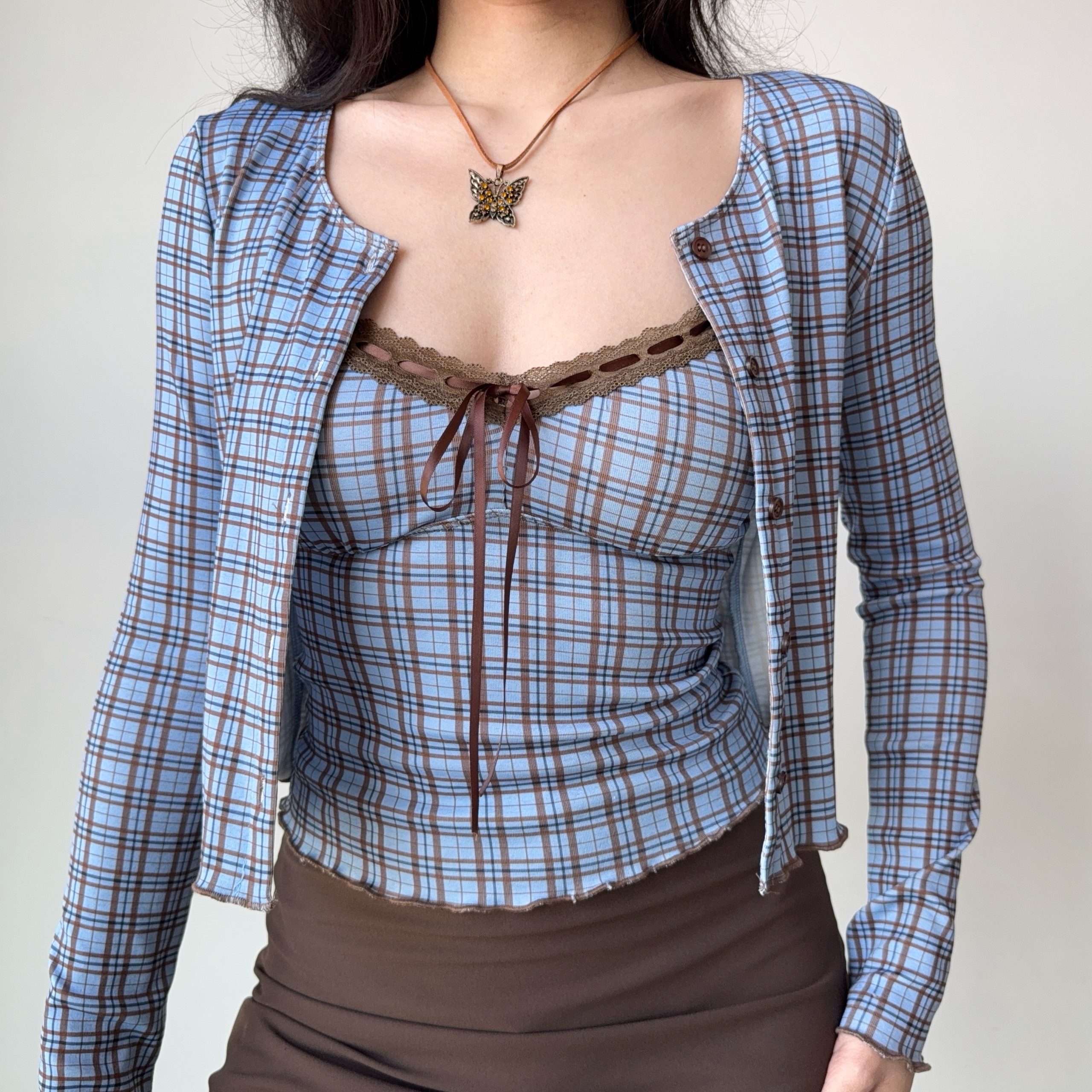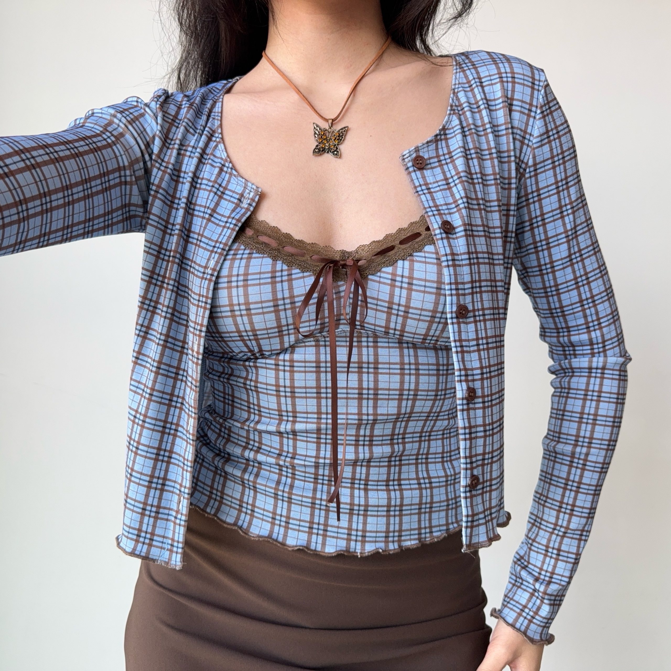 Vintage Plaid Camisole Cardigan Two Set Women Slim Fit Short Crop Top Y2K pired High-quality product featuring prom dresses, spring outfits, business casual outfits and more. Modern design that fits the latest trends. Premium materials ensure durability and comfort. Order now for special offers! Product designed with attention to every detail. Suitable for all occasions and personal styles.