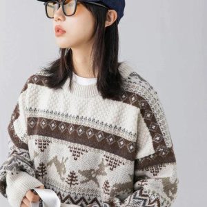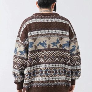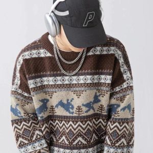 Delight in the charm of this vintage-style knitted sweater, adorned with a whimsical rabbits design and zigzag pattern. Unisex and cozy, it’s perfect for winter wear, offering a comfy feel ideal for couples seeking a retro-inspired look.