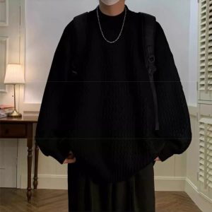 A relaxed knit built with a wavy texture that brings soft structure and easy movement; this men style blends y2k fashion men vibes with everyday comfort and warm layering appeal. The loose fit and clean lines make it a reliable pick for men sweaters in casual or street looks.
