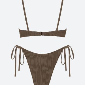 This sophisticated bikini features a unique wavy striped pattern that adds a modern twist to a classic design. These cups ensuring a flattering fit for all body types. The adjustable tie sides on the bikini bottoms allow for a customizable fit, providing comfort. Perfect for lounging by the pool or taking a dip in the ocean, this bikini set is a must-have for your summer wardrobe.