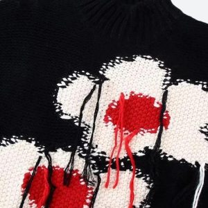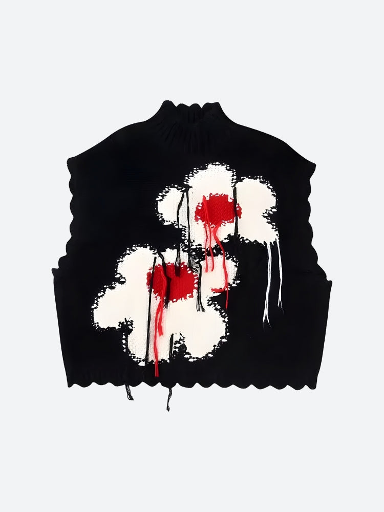 This unisex knitted sweater vest captures the essence of the weirdcore aesthetic with its quirky flower embroidery and tassel details. A versatile piece for streetwear, parties, or just staying cozy in winter, it adds a unique and humorous touch to any outfit.