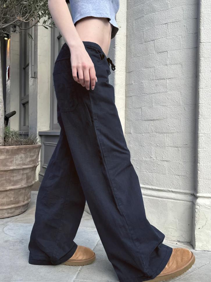 Women Low WaiElastic Drawstring Loose Long Pants Deep Blue Draped Wide Leg Casual Street High-quality product featuring prom dresses, spring outfits, business casual outfits and more. Modern design that fits the latest trends. Premium materials ensure durability and comfort. Order now for special offers! Product designed with attention to every detail. Suitable for all occasions and personal styles.