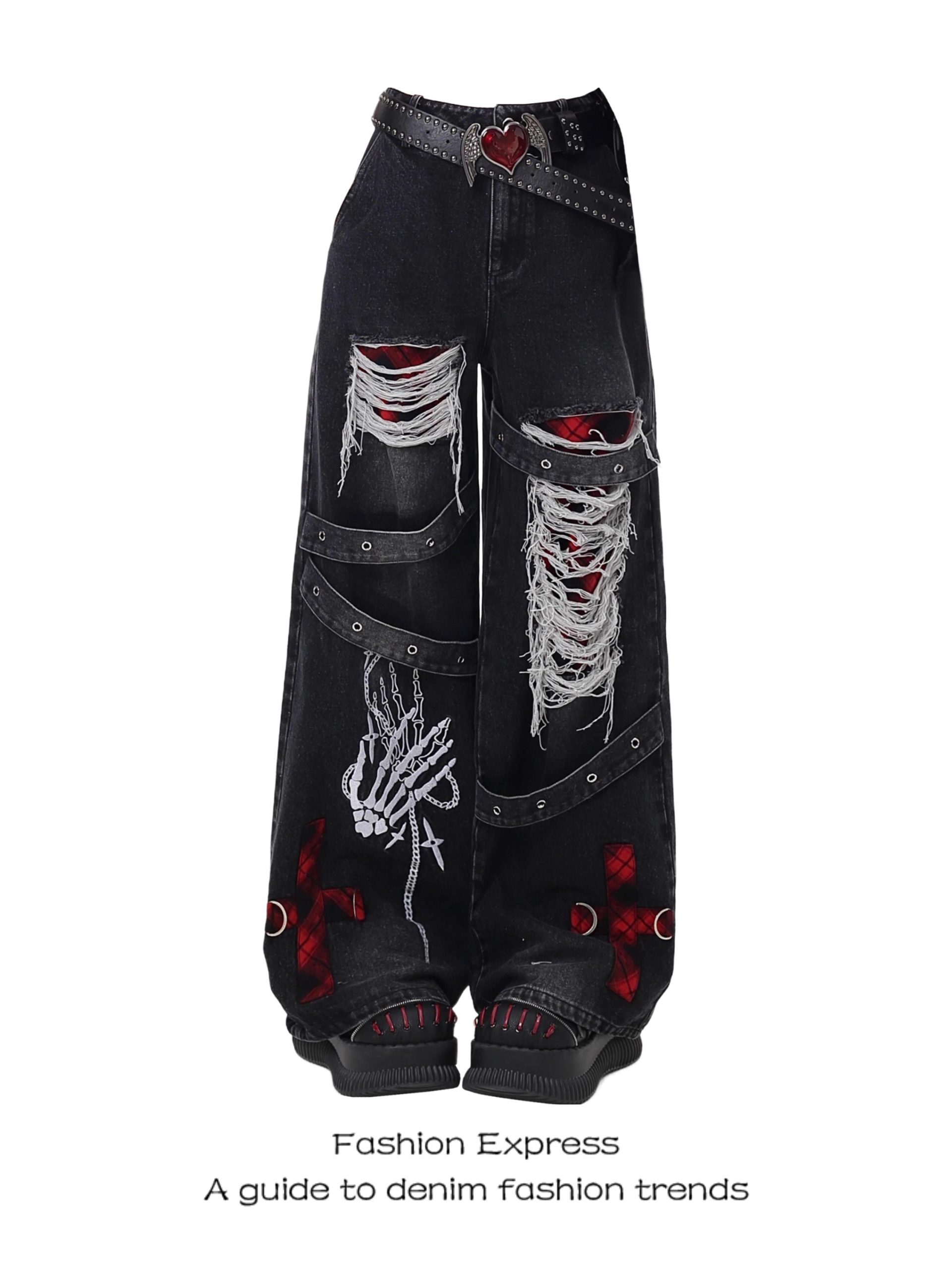 Women Wide Leg Ripped Jeans, Punk Retro Denim, pring Autumn High-quality product featuring prom dresses, spring outfits, business casual outfits and more. Modern design that fits the latest trends. Premium materials ensure durability and comfort. Order now for special offers! Product designed with attention to every detail. Suitable for all occasions and personal styles.
