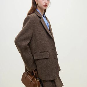 This Wool Blazer Jacket & Mini Skirt Set exudes timeless sophistication. Crafted from quality wool fabric, the tailored blazer and matching mini skirt offer a refined look perfect for work or a stylish day out. Add a classic touch to your wardrobe with this versatile set.
