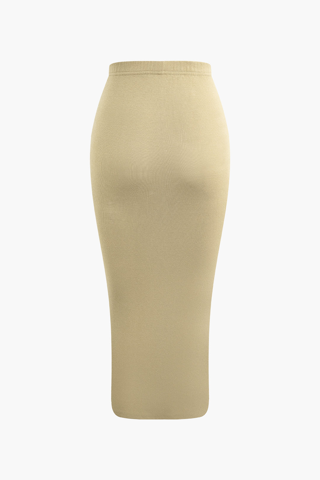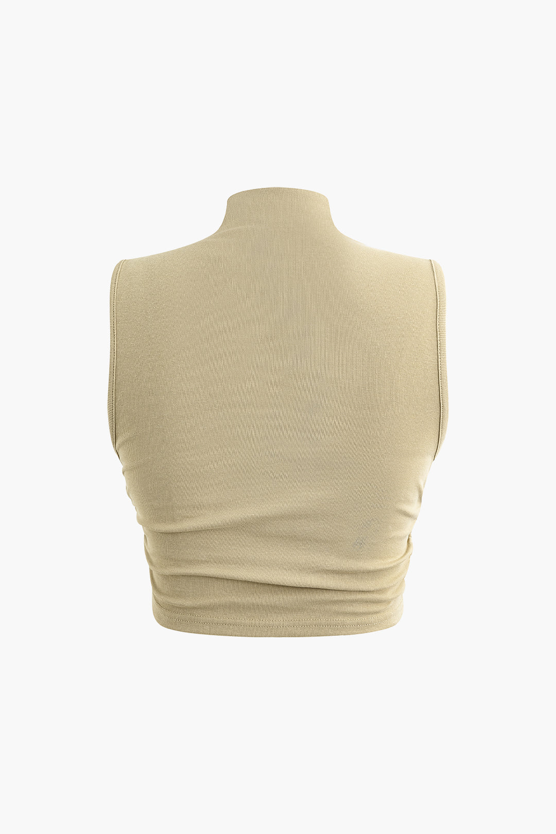 Y2k Outfit Ideas: Mock Neck Sleeveless Ruched Top & Maxi Skirt Set