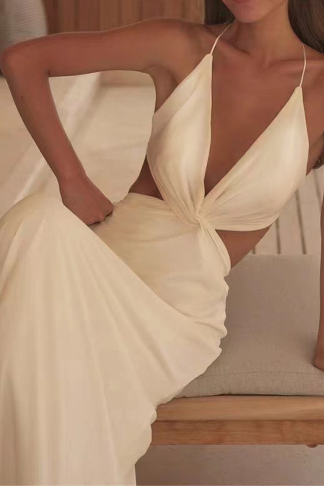 Y2k Tie Halter Deep V-neck Backless Maxi Dress: Summer Outfit Ideas