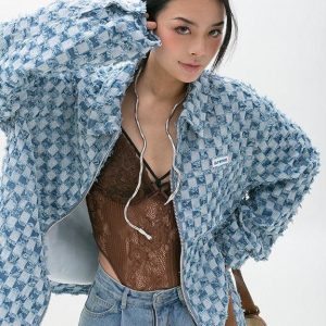 Y2K Checkered Zip Up Jacket