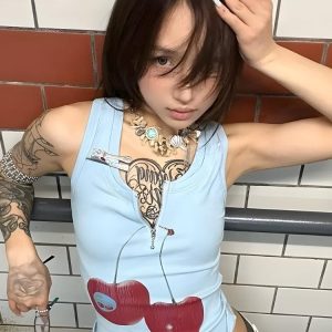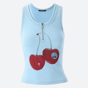 This Y2K Cherry Zip Up Top is a bold statement piece with a retro vibe. The zip-up front adds an edgy touch, while the playful cherry graphic brings a pop of color and fun. Perfect for pairing with low-rise jeans or mini skirts, this top is ideal for those looking to make a standout fashion statement.