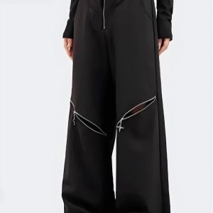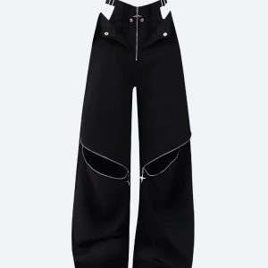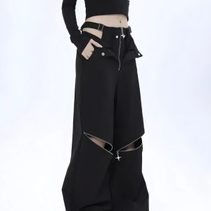 Revamp your wardrobe with these chic Y2K-inspired pants, featuring bold cut-outs for a statement look. Tailored for trendsetters, the unique design pairs effortlessly with urban tees or crop tops, ensuring your style stands out. Ideal for crafting a retro yet contemporary outfit.