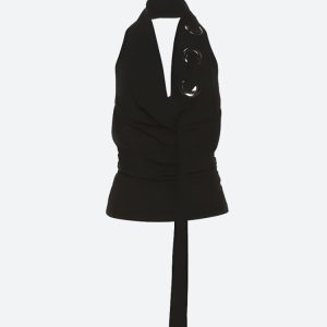 Give your look a bold edge with this Y2K eyelets halter neck top. Designed with oversized grommet rings, a front tie detail, and a sleek wrap fit, it brings serious attitude to any outfit. Pair with faux leather, low-rise pants, or mini skirts for that rebellious it-girl energy.