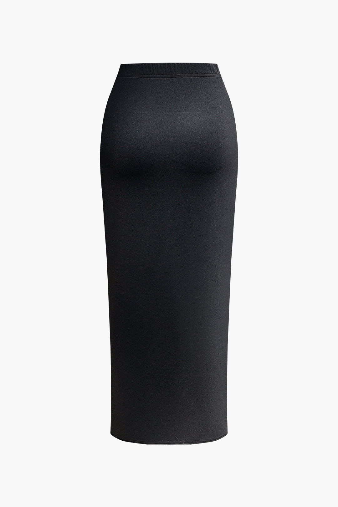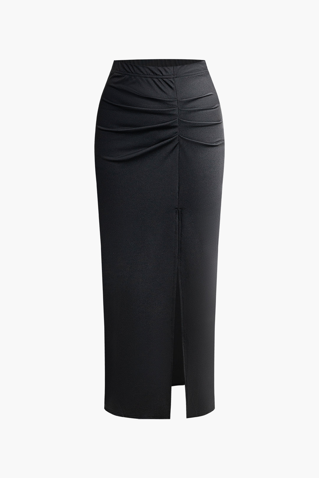 Y2K Mock Neck Crop Top Ruched Split Maxi Skirt Set Outfits High-quality product featuring prom dresses, spring outfits, business casual outfits and more. Modern design that fits the latest trends. Premium materials ensure durability and comfort. Order now for special offers! Product designed with attention to every detail. Suitable for all occasions and personal styles.