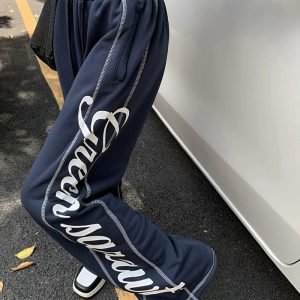 These Y2K graphic sweatpants bring a bold streetwear edge with their oversized lettering and relaxed silhouette. The soft fabric and wide-leg fit create an easy, laid-back shape ideal for everyday outfits. The elastic waist adds comfort while the graphic print delivers classic Y2K personality that pairs well with hoodies, tees, and cropped tops for effortless styling.