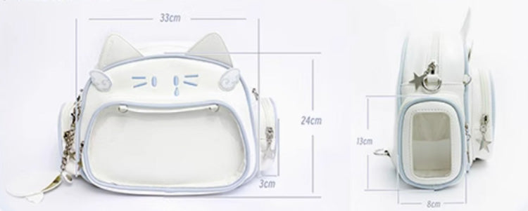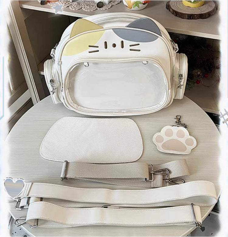 This cat-shaped ita bag is absolutely adorable! It can be worn as a shoulder bag, backpack, or carried by hand. The large capacity makes it perfect for daily use, and there’s a small side pocket that can hold dolls under 10 cm or small cards.