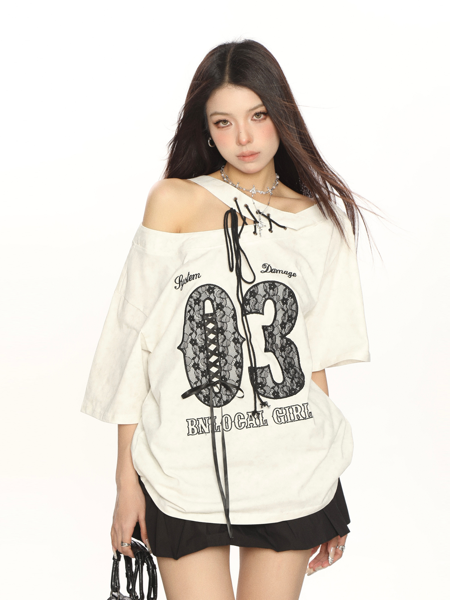 Y2K Lace Tie Shoulder Short Sleeve T- shirt Women Off Shoulder Summer Top High-quality product featuring prom dresses, spring outfits, business casual outfits and more. Modern design that fits the latest trends. Premium materials ensure durability and comfort. Order now for special offers! Product designed with attention to every detail. Suitable for all occasions and personal styles.