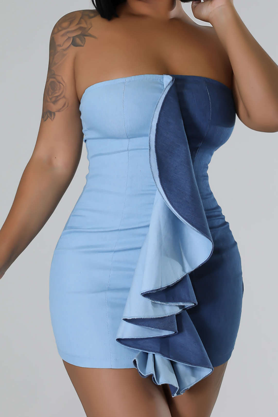 Y2K Patchwork Denim Ruffle Strapless Mini Dress Cute Coquette High-quality product featuring prom dresses, spring outfits, business casual outfits and more. Modern design that fits the latest trends. Premium materials ensure durability and comfort. Order now for special offers! Product designed with attention to every detail. Suitable for all occasions and personal styles.