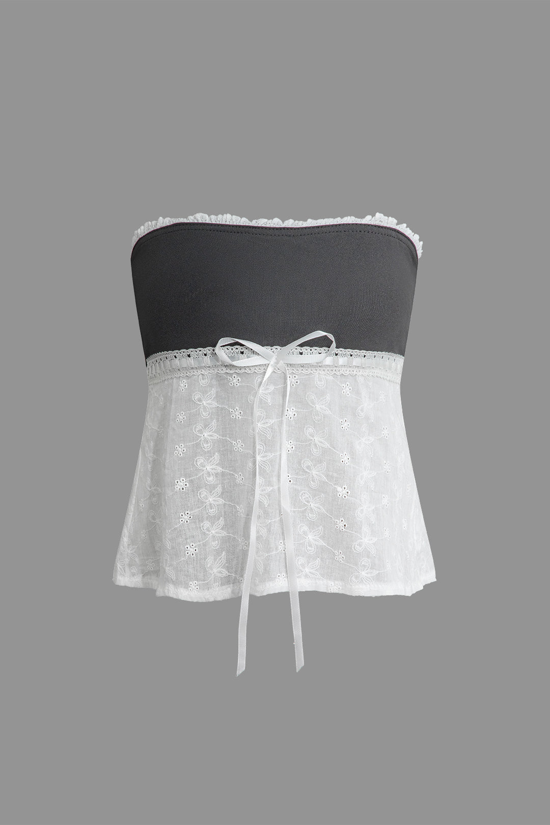 Y2K Patchwork Ruffle Neckline Tie Knot Strapless Top Coquette Outfits High-quality product featuring prom dresses, spring outfits, business casual outfits and more. Modern design that fits the latest trends. Premium materials ensure durability and comfort. Order now for special offers! Product designed with attention to every detail. Suitable for all occasions and personal styles.