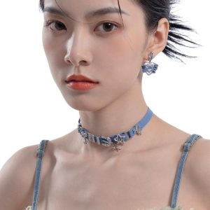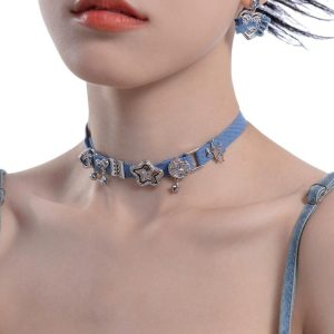 Y2K Sparkle Denim Choker Necklace