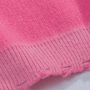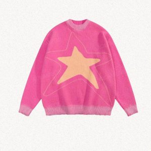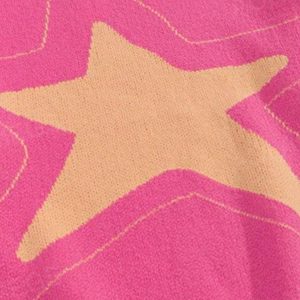 Revive the quintessential Y2K style with this eye-catching pink sweater, adorned with star prints. The distressed details at the hem and sleeves add a chic edge, while the cotton-polyester blend ensures comfort. Perfect for teens looking to add a pop of cute Y2K vibe to their wardrobe.