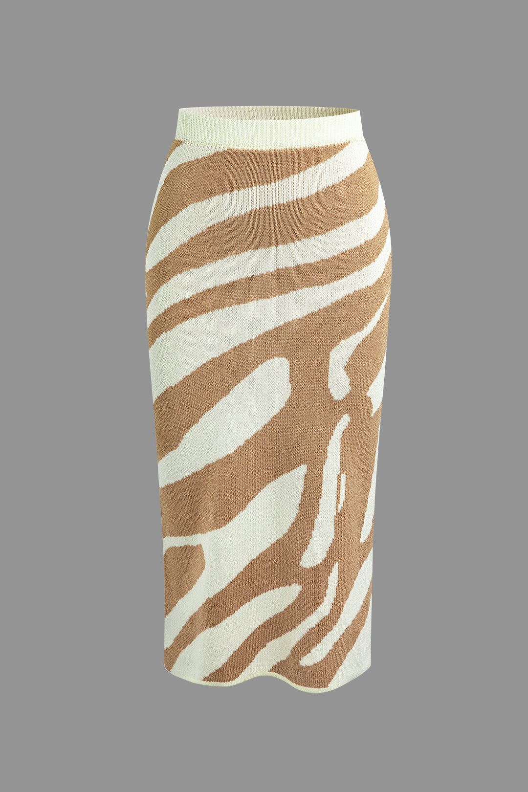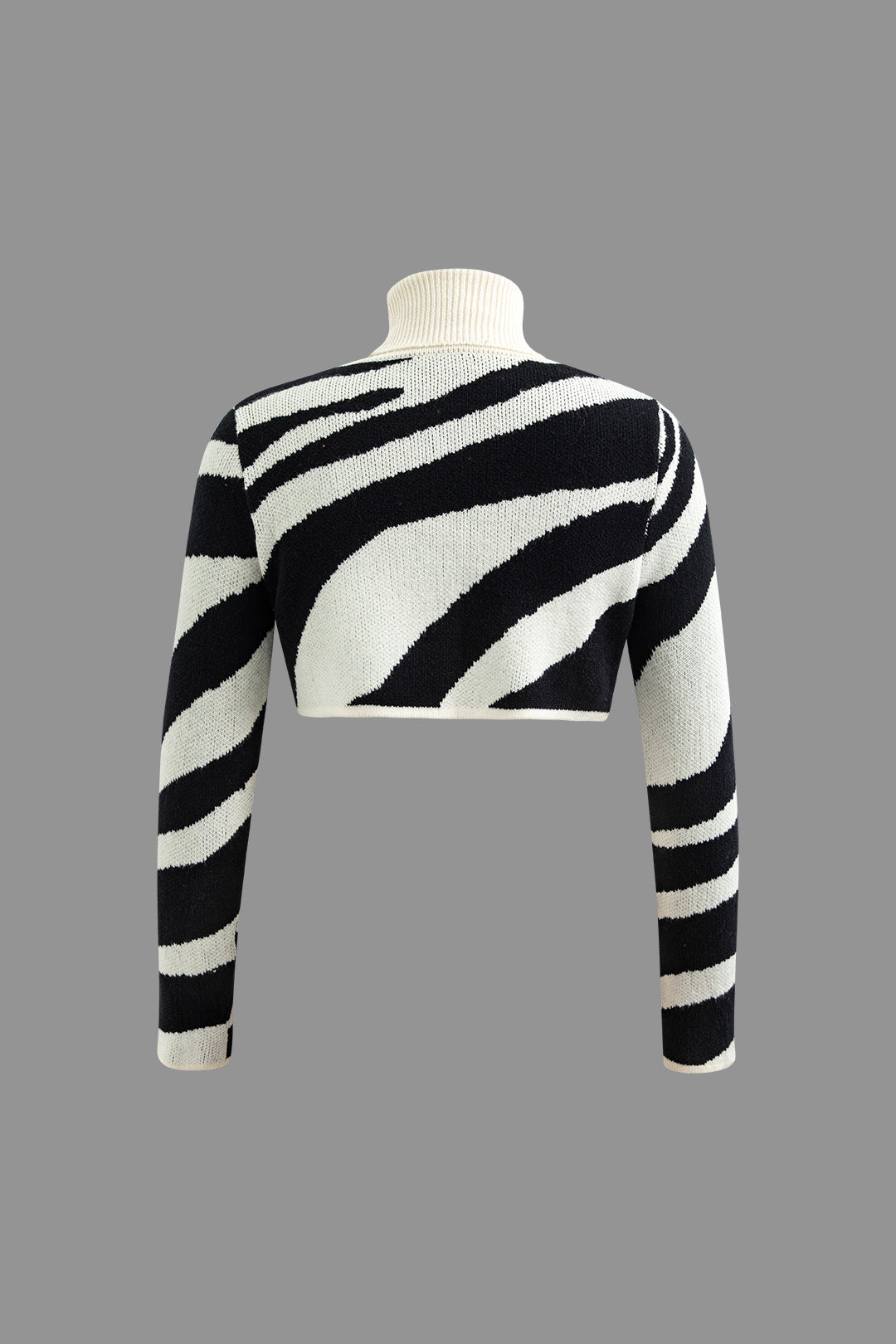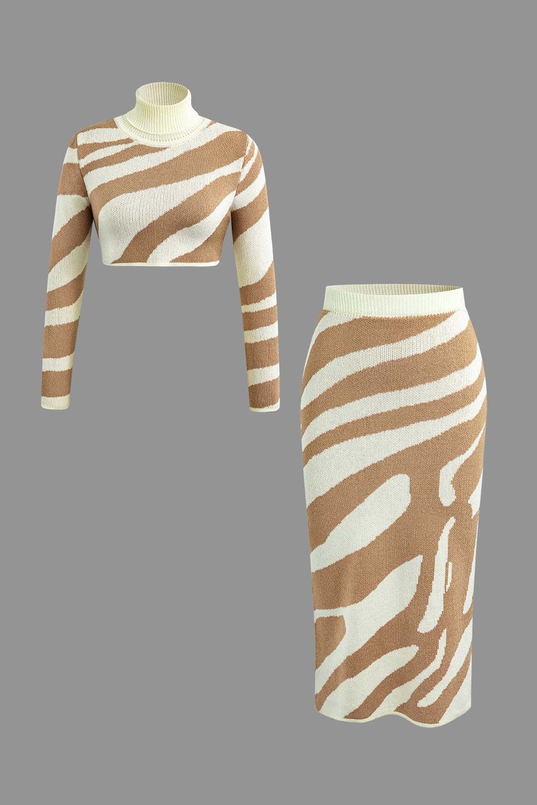 Y2k Stripe Knit Turtleneck Crop Top and Midi Skirt Set Outfit Ideas