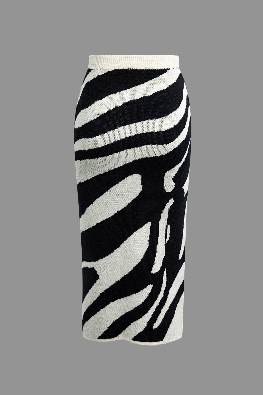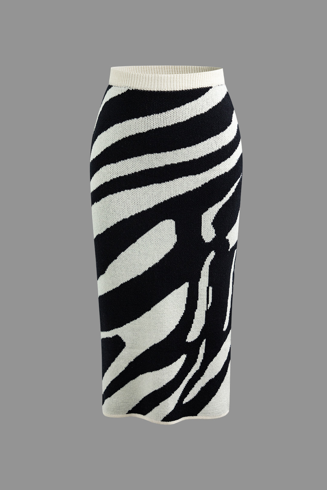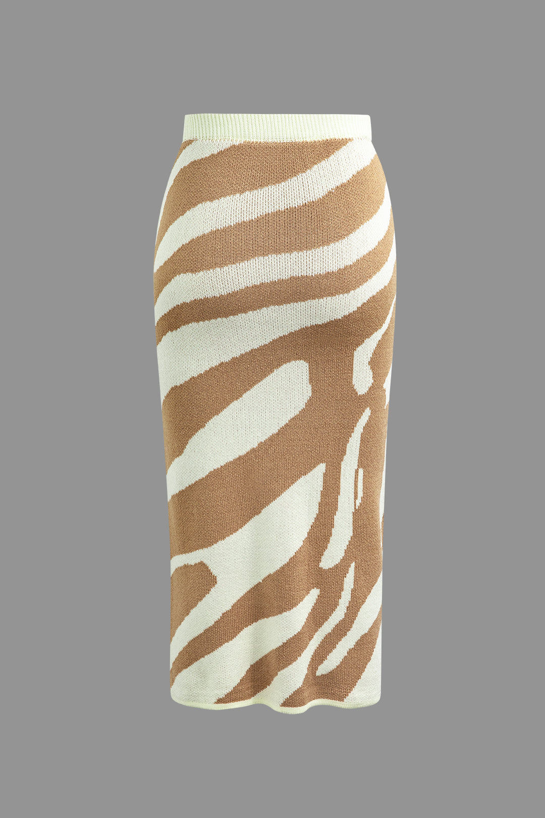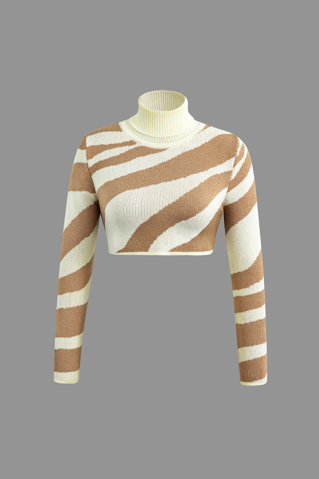 Y2k Stripe Knit Turtleneck Crop Top and Midi Skirt Set Outfit Ideas