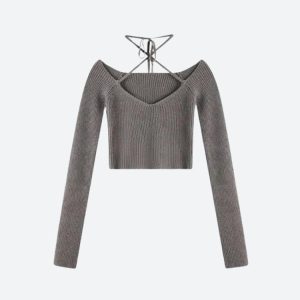 Bring Y2K vibes to your wardrobe with this halter neck tie crop top. The cozy knit fabric and cropped cut make it a perfect match for high-waisted jeans, skirts, or shorts, adding a stylish twist to your look.