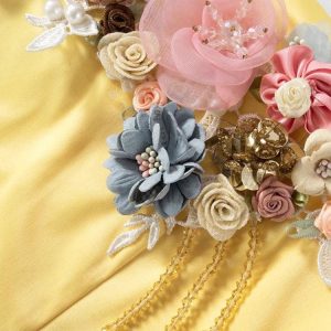 This strapless corset is adorned with intricate 3D floral appliqués, creating a vibrant and unique texture that makes a bold fashion statement. The corset is tailored to fit closely to the body, enhancing your natural curves while providing a comfortable fit.