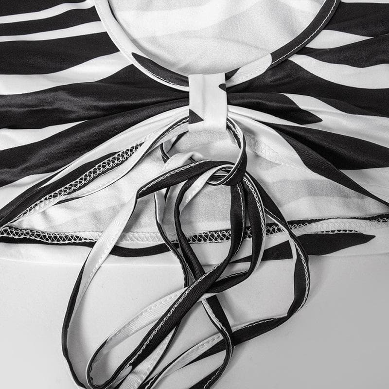 Step into the spotlight with our Zebra Print Self-Tie Contrast Long Sleeve Irregular Slit Maxi Skirt Set, a stunning addition to your Y2K fashion collection. This outfit perfectly captures the essence of Y2K summer outfits while embracing the bold aesthetics of 90s fashion. The eye-catching zebra print and self-tie design make it a standout choice for any occasion, whether you’re hitting the beach or attending a 90s theme party.
