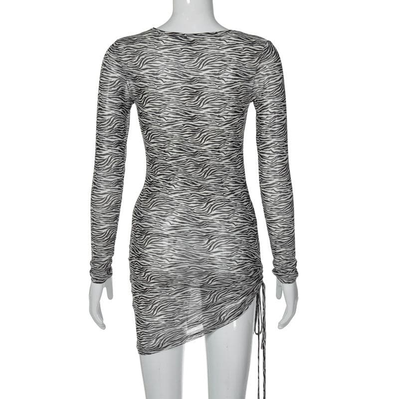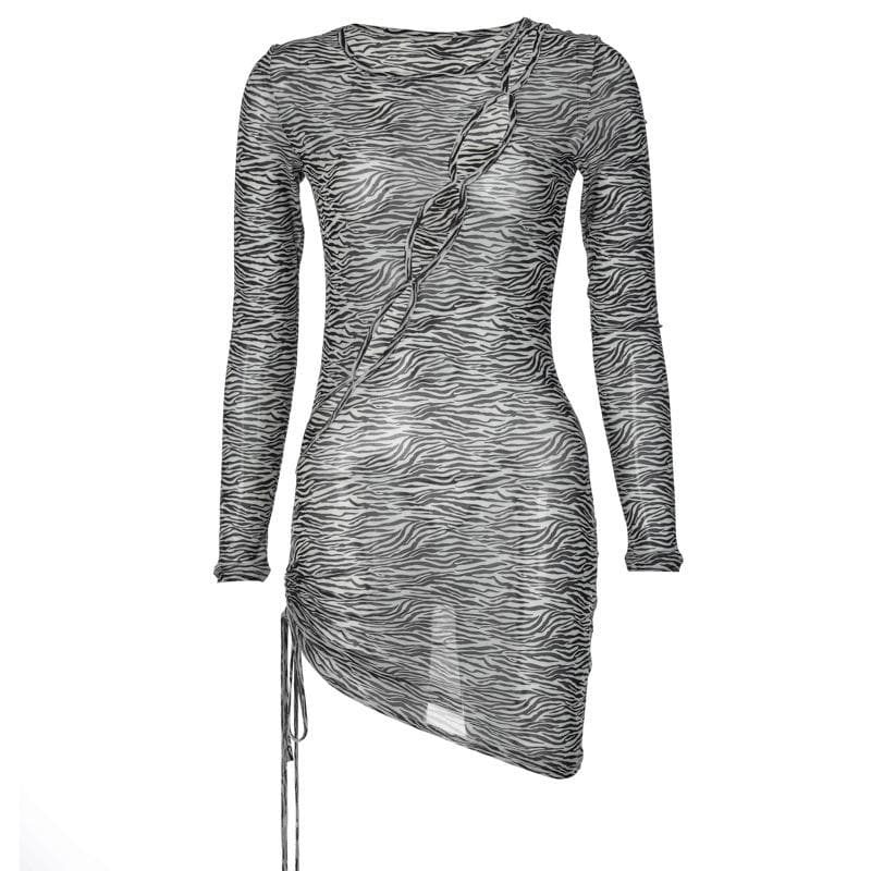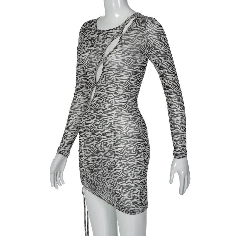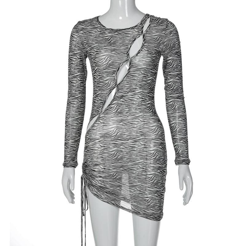 Zebra Print Sheer Mesh Mini Dress Hollow Out Long Sleeves Y2K High-quality product featuring prom dresses, spring outfits, business casual outfits and more. Modern design that fits the latest trends. Premium materials ensure durability and comfort. Order now for special offers! Product designed with attention to every detail. Suitable for all occasions and personal styles.