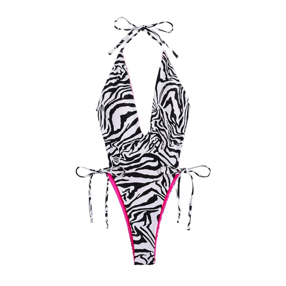 Zebra Print V- Neck Halter Backless One Swimwear Y2K Lovers High-quality product featuring prom dresses, spring outfits, business casual outfits and more. Modern design that fits the latest trends. Premium materials ensure durability and comfort. Order now for special offers! Product designed with attention to every detail. Suitable for all occasions and personal styles.