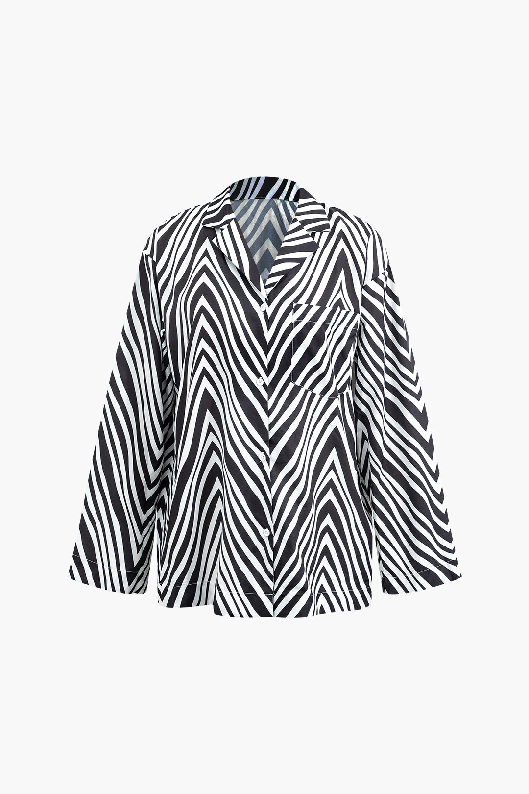 Step into the world of Y2K fashion with our stunning Zebra-Stripe Notched Lapel Pocket Shirt & High Waist Pants Set. This outfit perfectly encapsulates the essence of early 2000s style, combining bold patterns with a modern twist. The notched lapel shirt features a chic pocket detail, while the high waist pants offer a flattering silhouette that pairs beautifully with platform shoes or baggy jeans for a complete look.