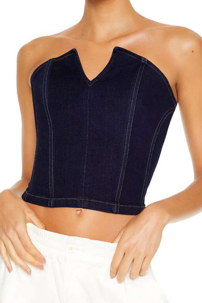 Zipper V- Neck Strapless Denim Top Y2K Cute Crop Top Outfits High-quality product featuring prom dresses, spring outfits, business casual outfits and more. Modern design that fits the latest trends. Premium materials ensure durability and comfort. Order now for special offers! Product designed with attention to every detail. Suitable for all occasions and personal styles.